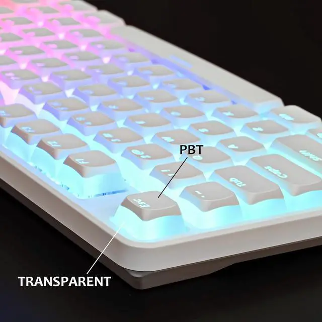 Pudding KeycapsThe dual-layered Translucent Keycaps unleashes more light through, making your keyboard's RGB lighting effects more dazzling. The solid white keycaps design brings a really sleek feel to your keyboard.