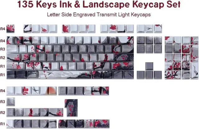 Keycap Set: This keycap set includes 135 keys with a 6.25 u spacebar and 1 keycap puller, fit most 60%/65%/75%/80%/96%/100% (61/64/68/75/84/87/96/104/108) US layout mechanical keyboard