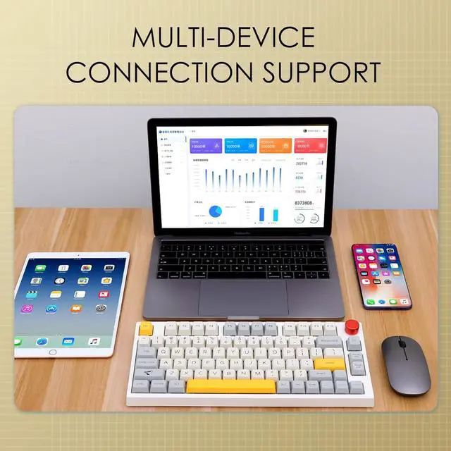 Three Modes of Connectivity: Bluetooth 5.0 & 2.4GH z&Type-C CableEquipped with the 4000mah Capacity battery, this keyboard supports wireless and wired connections. By the wireless option, either Bluetooth (up to 5.0 ) or 2.4GH z can be chosen, and the polling rate can be up to 1000hz with 2.4GH z. By the wired mode, macro can be programmed to better fit your typing habits. The modes can be easily switched by Fn+1/2/3 (Bluetooth) / 4( 2.4GH z) / 5 (USB Wired)