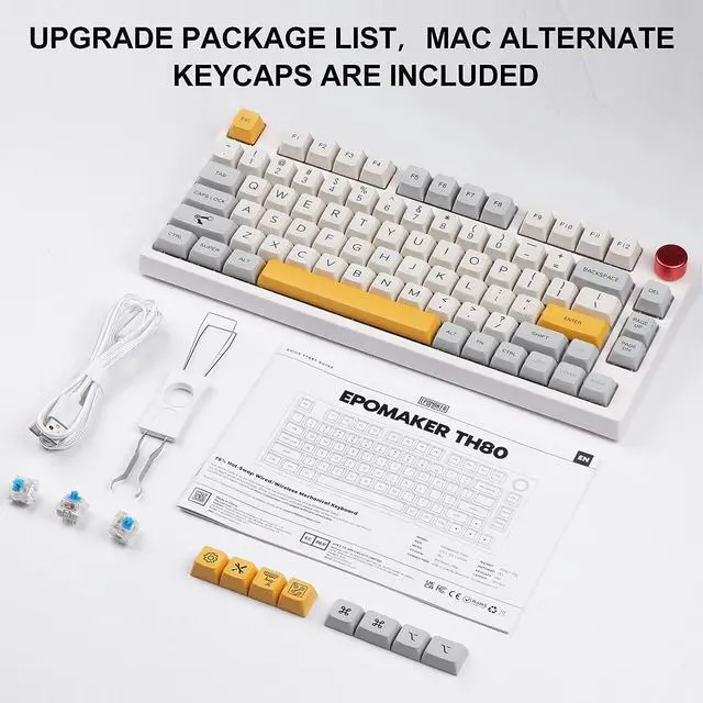 Amazing RGB Effects&Programmable with Included SoftwareEPOMAKER TH80 mechanical keyboard features a variety of default RGB effects that you can easily switch between each other with simple shortcuts. More than that, compatible software is available for those who loves more DIY settings. You can make it your own effects with the software