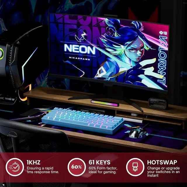 • PREMIUM MECHANICAL SWITCHES: The GK61 comes equipped with hotswap mechanical switches that deliver ultimate performance and reliability, designed for enduring and intense usage.