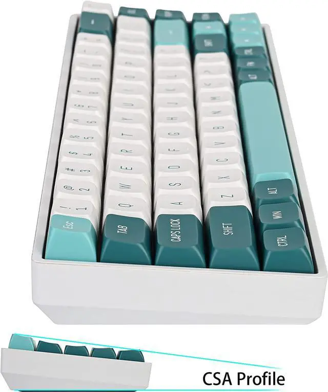 [CSA Profile] The keycap set is designed with CSA profile for those who feel like ergonomic typing experience. Its height is higher, generally between 9.5 - 12.5 mm, which is higher than cherry profile, its similar to the SA but slightly shorter and more indented