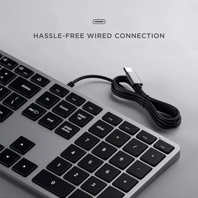 Optimized For Mac - designed with Apple users in mind, the Slim W3 Wired Keyboard features a QWERTY extended layout with numeric numpad, hassle-free wired connection, and MacOS function keys with a sleek aluminum finish