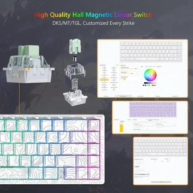Keyboard New Web-SoftwareUltra-low latency is just the beginning of what magnetic switches bring to the table for gamers. The true revolution lies in features like rapid trigger (RT), SOCD (Snap Tap), and advanced functions like DKS/MT/TGL. These cutting-edge innovations give magnetic switch keyboard users a decisive edge that will only grow stronger as the community continues to evolve. More Power to You with New web-based software driver. The web-based driver offers easy access without installation and compatibility across all operating systems.