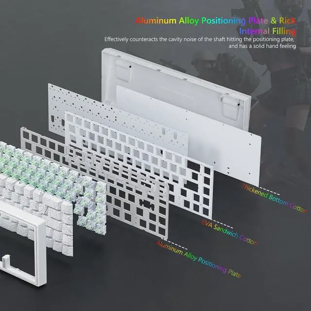 Topographic Themed Custom Keyboard67key compact layout keyboard with topographic pattern on both shell and keycaps. Metal PCB plate, Make the keyboard stable and feel better, can stabilize the performance of the magnetic switches. Double layers of sound-absorbing cotton and ergonomic two-stage foot design improve the stability of the keyboard while delivering a better gaming experience.