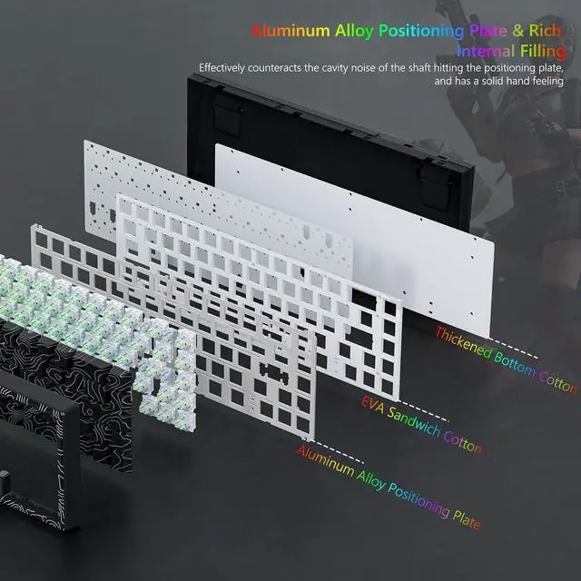 Topographic Themed Custom Keyboard67key compact layout keyboard with topographic pattern on both shell and keycaps. Metal PCB plate, Make the keyboard stable and feel better, can stabilize the performance of the magnetic switches. Double layers of sound-absorbing cotton and ergonomic two-stage foot design improve the stability of the keyboard while delivering a better gaming experience.