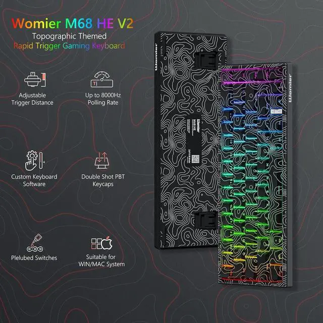 Hall Effect Mechanical Gaming KeyboardThe keyboard is equipped with womier custom hall effect magnetic switches, offering ultra-accurate typing experiences adjustable in 0.1mm. From 0.08mm to 3.4mm customizable trigger points, each key can be personalized according to the minimum unit of 0.1mm. In addition, the press sensitive and reset sensitive can be set individually through the software to match the key press habits of different people for different types of games.
