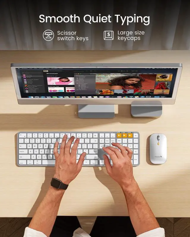 Flat Keyboard: ProtoArc keyboard for mac is intentionally designed to be flat for neutral wrist position, allowing you to hold your wrists level with your fingers while typing. This design minimizes the risk of discomfort and potential issues such as carpal tunnel syndrome