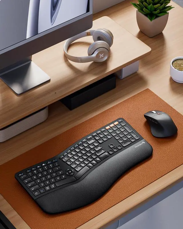 Full-size Ergonomic Design: The wireless ergonomic keyboard features with full size layout, curved and split keyframe design, which helps to position your wrist and forearm in a more natural, relaxed posture. Scooped keys perfectly match the shape of your fingertips, offering quick response with every keystroke. Premium comfort and productivity for all-day typing.