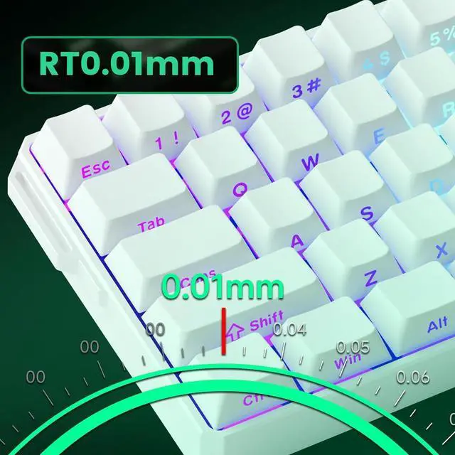 Ultra-Precise Rapid Trigger: FUN60 Ultra CNC ALUMINUM keyboard can achieve an ultra-accurate 0.01mm rapid trigger and the actuation distance can be adjusted in 0.01mm steps. Whether you're typing or gaming, users can fine-tune to ensure the optimal trigger for faster response times and enhanced precision during competitive gaming