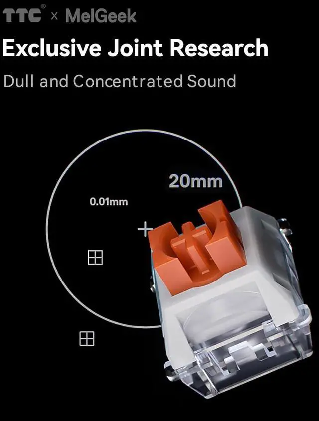 MelGeek x TTC Special SwitchTTC Tai E Switch is of an integrated soft-elastic structure to reduce noise and has a high-rebound pressing feel. The sound is relatively dull and concentrated, suitable for players who pursue stable & extreme performance and like HIFI typing sounds.