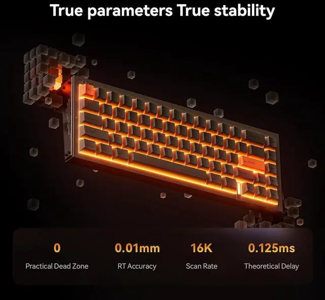 High-sensitivity Magnetic KeyboardFull-key 16K resolution, 8KHz polling rate, and 0.125ms ultra-low latency make it stand out. The magnetic switch keyboard has a fast response speed and high sensitivity, which can achieve fast input and operation, suitable for gaming and efficient work scenarios.