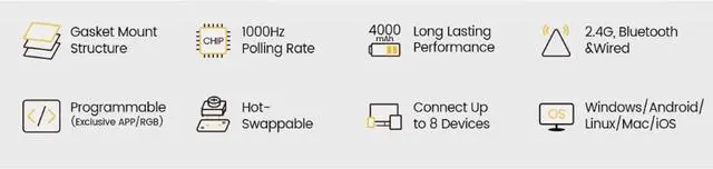 Gasket Mount Assembly - The Mojo68 uses silicone to completely surround the plate to mount to the case while using poron foam to insulate vibrations and trap sound transferred between the plate and the PCB. This combination of silicone and poron foam considerably dampens the sound.