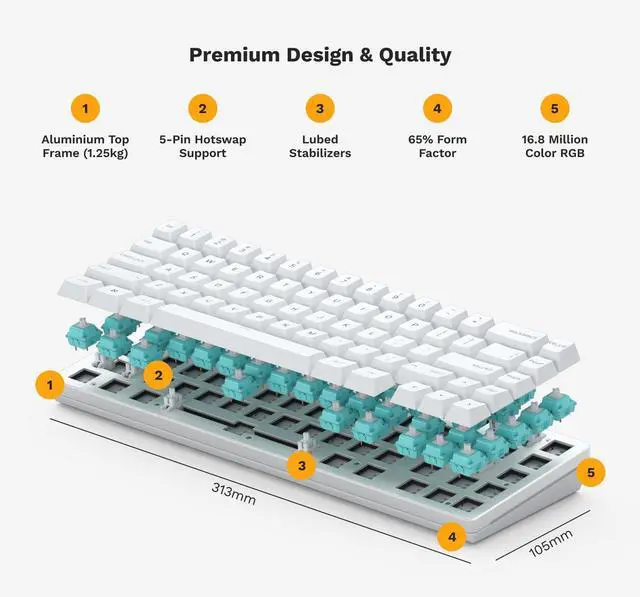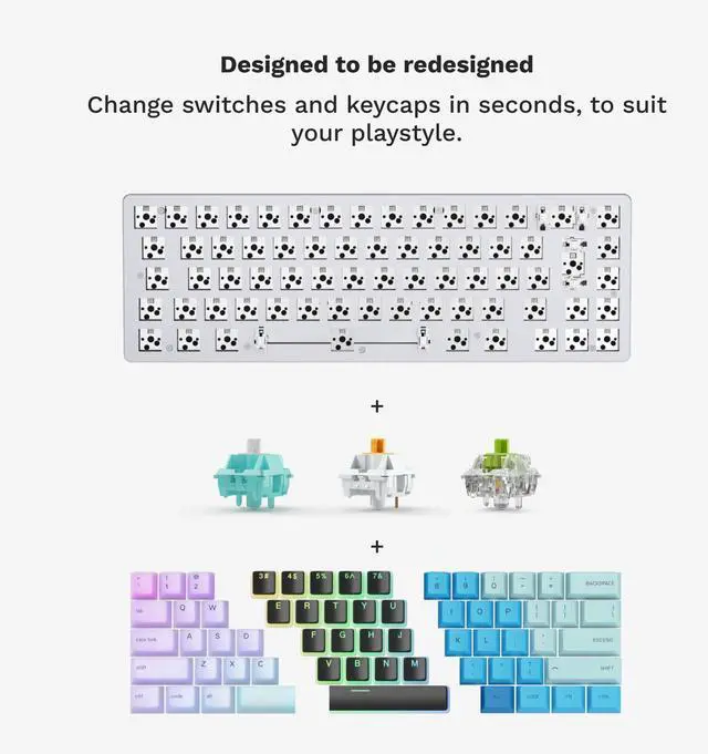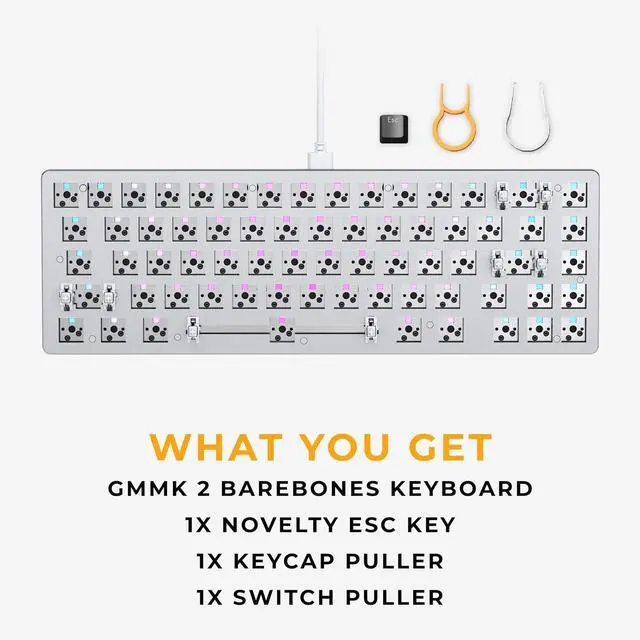 The GMMK 2 Compact (65%) Barebone Frame is an incredible gaming keyboard frame at an incredible value with unmatched build quality. Fully customizable to your perfect look, feel, and sound. The Barebones option includes a coiled cable and customization tools.