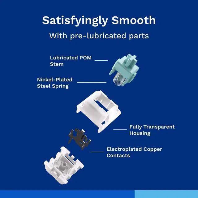 Lubricated POM Stem: Reduces friction for a buttery smooth press that feels addictively satisfying while typing or gaming.