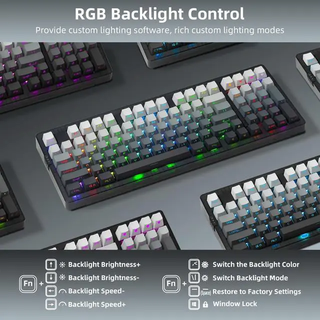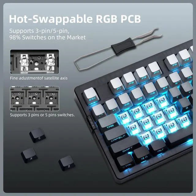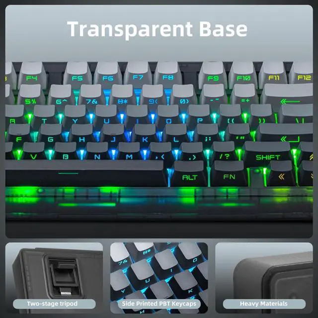 PBT Keys and Compact Design: Made of durable and oil-resistant PBT material with a transparent, engraved design providing both aesthetics and functionality. It saves almost 20% space compared to the 104-key design while maintaining the numeric keypad, making it more compact and effective.