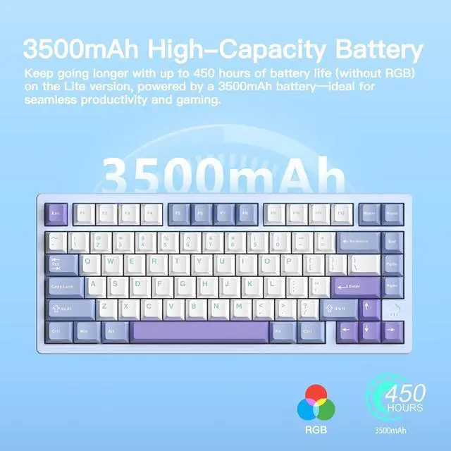 KEEBMONKEY WOBKEY Rainy 75 Aluminum HMX/JWK Switches Mechanical Keyboard with Superior Acoustics, Wired, BT, 2.4G Wireless Connectivity, RGB/PP/Gradient Glass/3500mAh/Violet Switch (Standard - Blue)