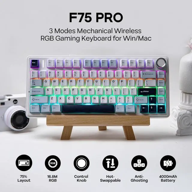 What kind of switches are used for this F75 PRO hot-swappable keyboard?