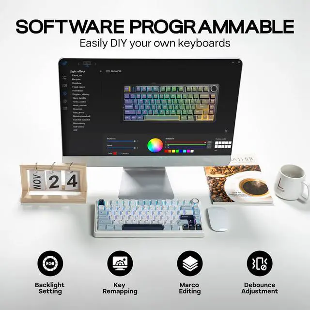 Gasket-mounted Keyboard with LEOBOG Reaper SwitchesPre-lubricated LEOBOG reaper switches & stabilizers Gasket-mounted structure MechLands Aula F75 PRO: Always Ready for Prolonged Work & Exciting Gaming MarathonsConnectivity HubVersatile KnobErgonomic KickstandsPacking List What's the polling rate of this gaming keyboard?