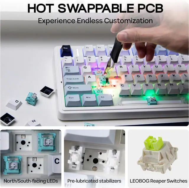 F75 PRO utilizes the LEOBOG Reaper Switch (Linear, 45-55gf, 1.8-3.6mm)