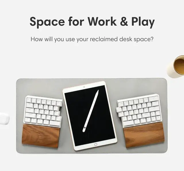 • Ergonomic Design for Neutral Posture: The split design, integrated tenting, and walnut palm rest help reduce strain associated with traditional keyboards. This design can alleviate wrist pain, back pain, and shoulder pain, reducing the risk of RSI and Carpal Tunnel Syndrome. Enhance your desk posture and overall comfort effortlessly.