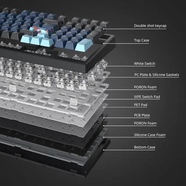 Gasket MountedThe linear keyboardis designed with the most advanced Gasket Mount keyboard internal structure on the market, Our keyboard configured Gasket silicone spacers, a sandwich silicone silencer, a sound absorbing foam and a silicone pad at the bottom, Make typing smoother, Reduce keyboard typing noise.