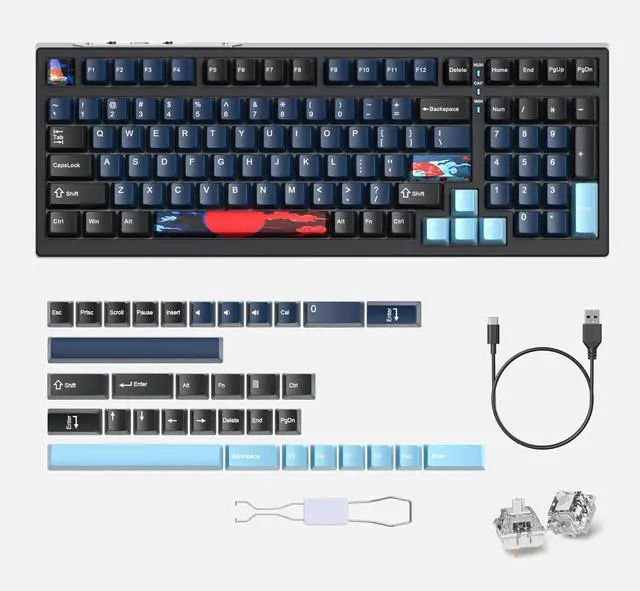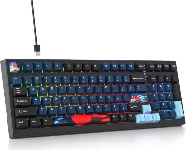 96% RGB Mechanical Keyboard96% layout with 99 keys, retains separate arrow keys, making the desktop cleaner without sacrificing essential functionality. It can perform the commands of a full-size keyboard with more space for mouse movement.This gaming keyboard is a boutique equipment for PC gamers and office users.