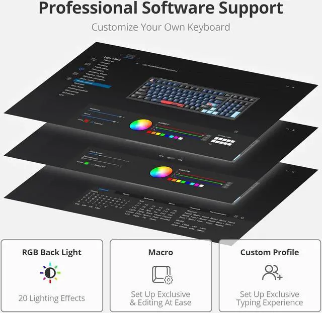 Software Macro CustomizationDriver can define your rgb keyboard by setting millions of backlight colors and macro keys, changing with music/games or microphone audio. Build macros, and set up per-key lighting and effects.The detachable TYPE-C connection provides you with the flexibility to connect various devices, making it an excellent choice for games and daily use.