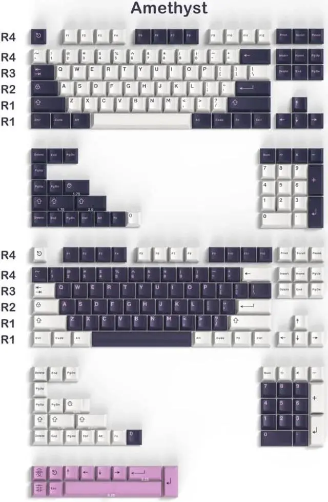 Custom Keycaps:Consists of 253 mechanical keyboard keycaps and other stabilizers,suitable for 61 64 68 84 75 87 96 104 108 layout keyboards like gk64,gk61,rk68, rk84, gh60,etc.These purple keycaps are compatible with cherry mx,gateron,kailh,outemu and any key switches with cross-shaped switches.It is a good choice for you to DIY your mechanical keyboard.