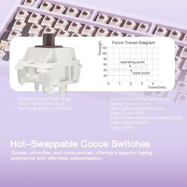 • Custom Lubricated HMX Violet & Cocoa Switches