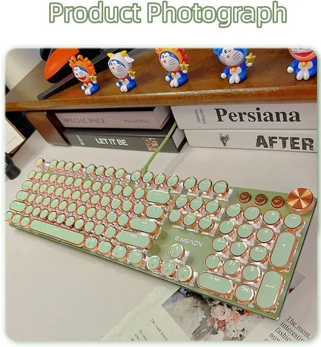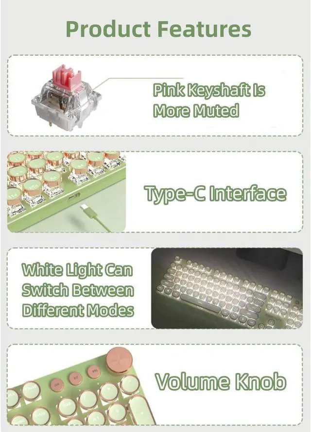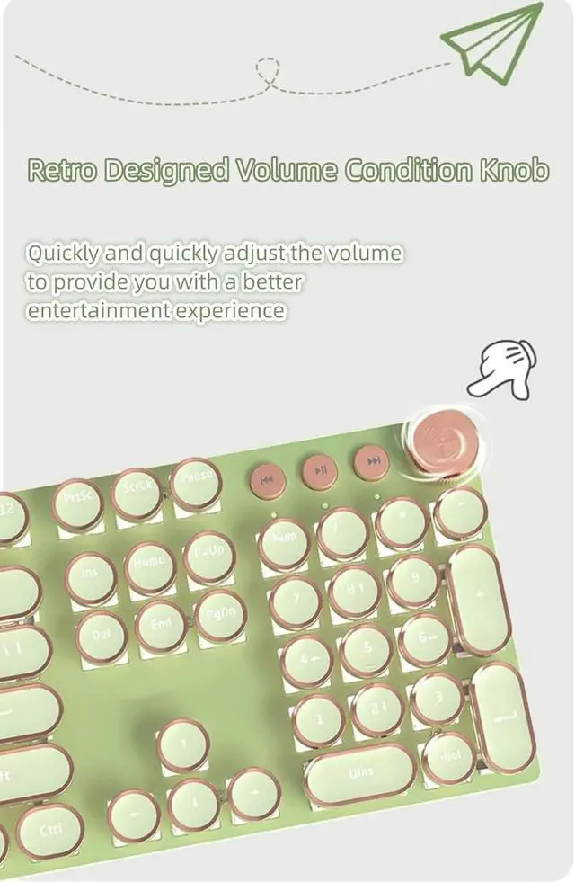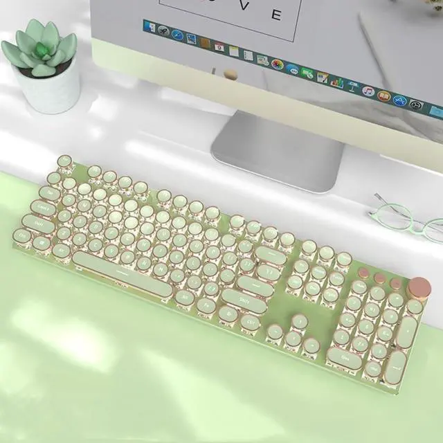 [Retro Round Keycaps]: This computer keyboard adopts retro round concave keycap, a square mechanism under each key improved stability, noise reduction, quick rebound and no delay.