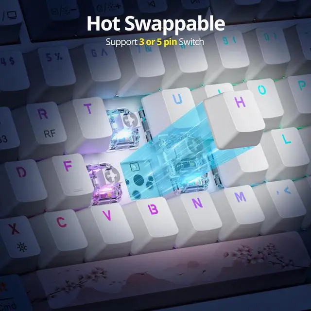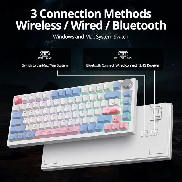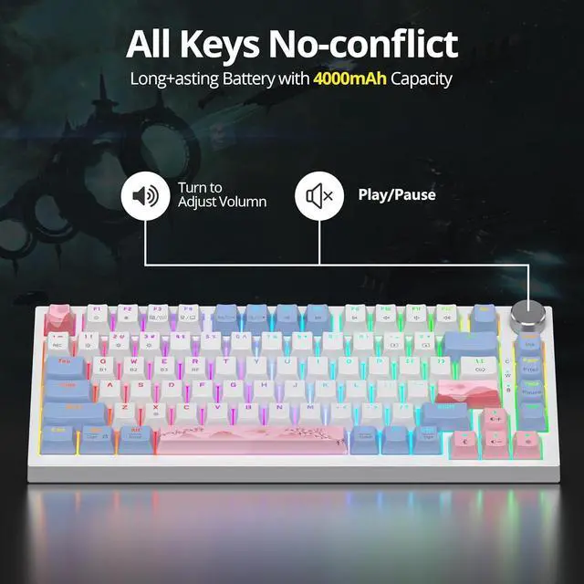 112 Multimedia Hot Keys2Thocky keyboard3Programmable Software Switch to 2.4G Mode with FN+R: