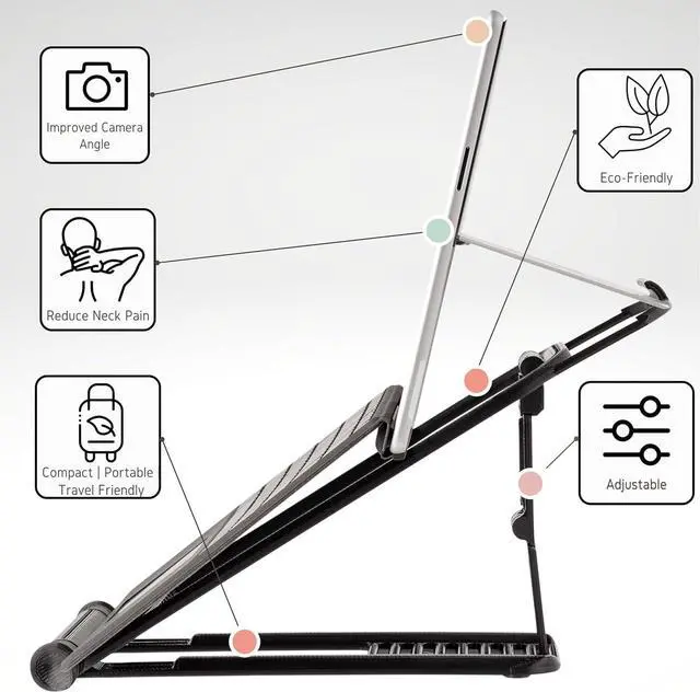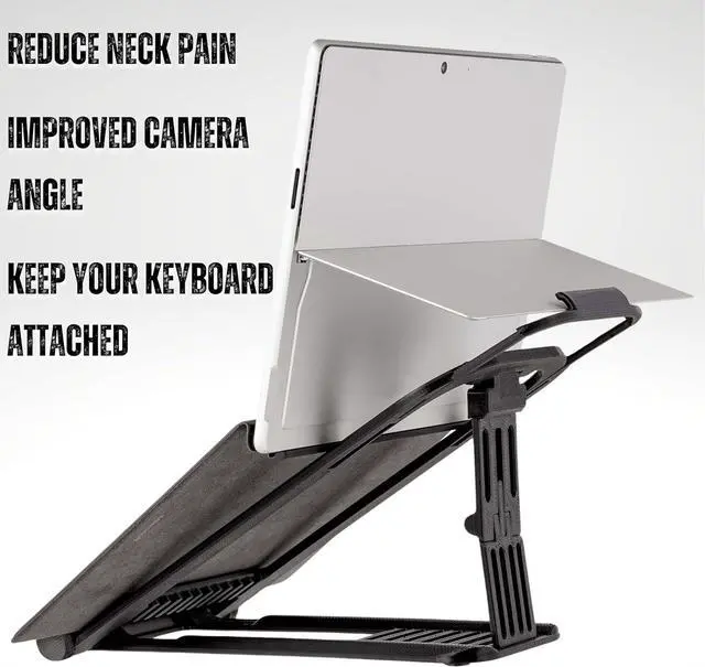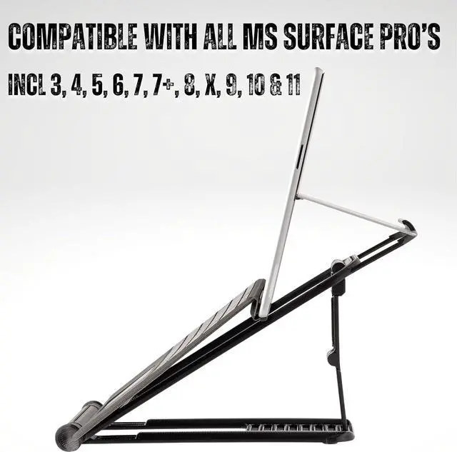 ADJUSTABLE - Not everyone needs or wants the same screen height, so we've make the Surface Pro Laptop Stand ergonomic and easily adjustable in seconds to suit the space you are in with 16 adjustable positions and a variety of screen angles. COMPACT - It folds down neatly into the same space as your Surface, making it ideally suited for carrying with your Surface.