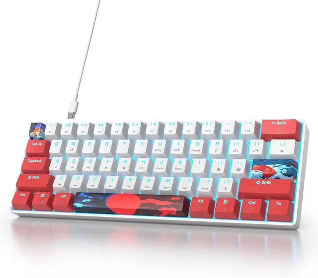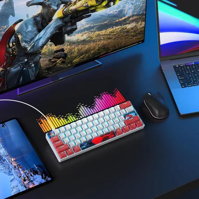 • Compact Keyboard with Ergonomic Design: Our 61-key compact keyboard is perfect for those who want a powerful keyboard without sacrificing desk space or portability. The 60% keyboard with PBT ergonomic keycaps, you'll experience comfort and ease of use like never before, ensuring long gaming sessions or extended typing workloads are a breeze.