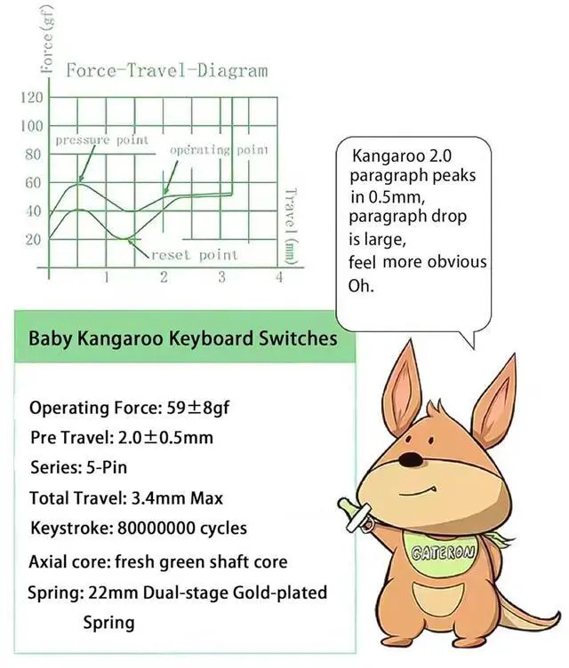 Gateron Baby Kangaroo 2.0 Switches,Large paragraph tactile feeling ahead,so that each keystroke has a clear sense of confirmation,reducing the number of false touches,suitable for high-speed blind typing,Users who need clear feedback - Baby Kangaroo 2.0 is the perfect choice!