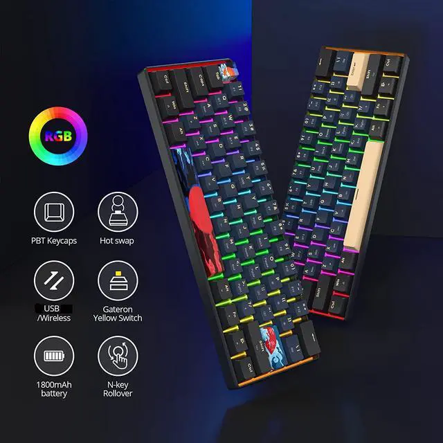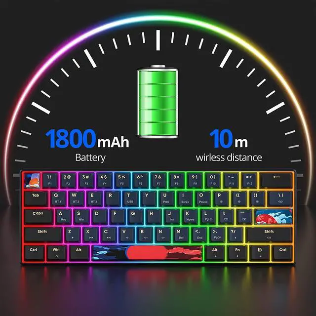 RGB Wireless Bluetooth keyboard: Surmen GT61 60% wireless gaming keyboard is also armed with a 1800mAh battery, lasting up to 24 hours (tested with static RGB lighting), or up to 5 days of normal use (8 hrs/day)