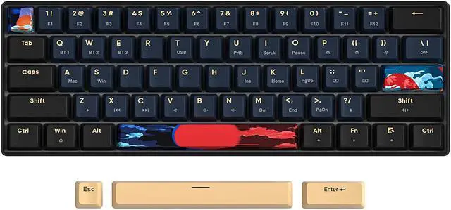 PBT Keycaps & OEM profile: Surmen keyboard comes with 3 extra keycaps (ESC+space bar+enter), the keycaps of gaming keyboard GT61 are not shine through and not easy to be oil and worn out. It can be at the matte state after long time gaming.