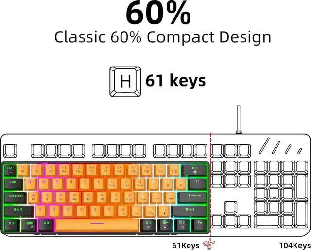 Snpurdiri 60% Mechanical Keyboard (Black-Yellow, Brown Switches)