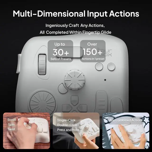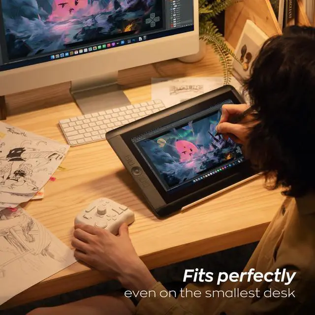 THE ULTIMATE DRAWING ASSISTANT: perfectly compatible with drawing tablets and pen displays. A single knob controls a range of brush parameters such as size, flow, opacity, and hardness, while facilitating seamless canvas rotation, movement, zooming, and quick tool switching. This ensures a fluid and uninterrupted drawing experience.