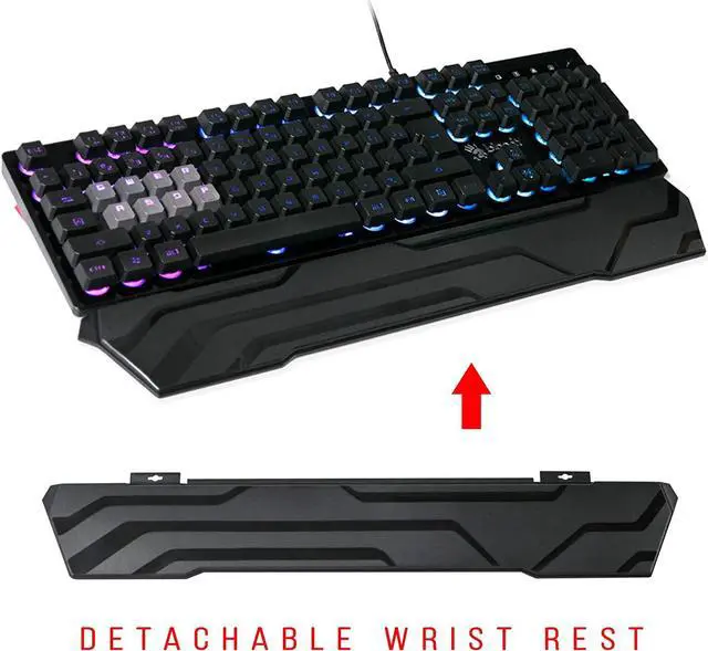 Ergonomic design: This gaming Keyboard has a detachable ergonomic wrist rest and additional keys that are comfortably within reach for crucial bindings and macros. The design is ideal for strenuous gaming sessions as it helps to reduce long-term shoulder strain by allowing more neutral mouse and keyboard positioning. The wrist rest comes with two swappable wrist rest faceplates in black and red, and has been engineered to deliver total comfort and quick, convenient stowing and portability.