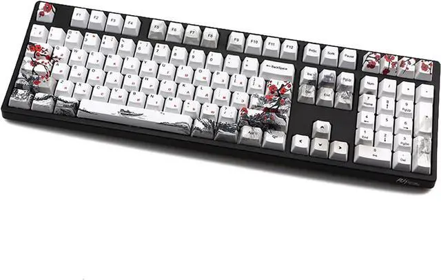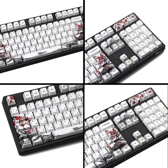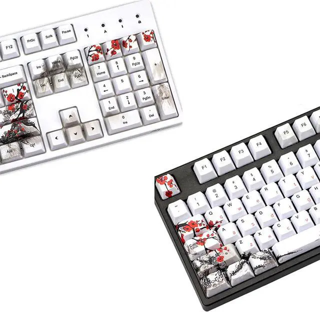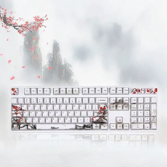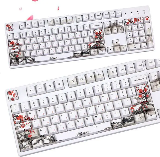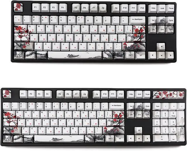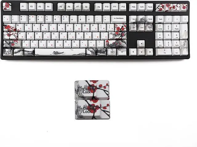 Russian Keycaps Plum Blossom Keycaps 110-Key OEM PBT Five-Sides Sublimation Russian English For Mechanical Keyboard dye sublimation keycaps Russian English Russian Keycaps