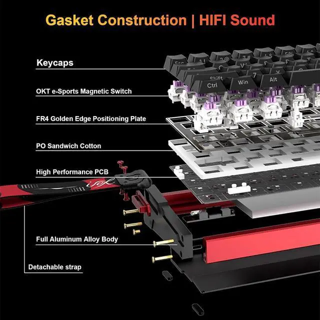 Hall Effect Magnetic Switches: The entire keyboard is equipped with fully adjustable high performance magnetic switches, enabling you to set every keys actuation point from a light 0.01mm to a strong 3.4mm in 0.01mm steps, putting you in control for fast keypresses or ultra-accurate typing.