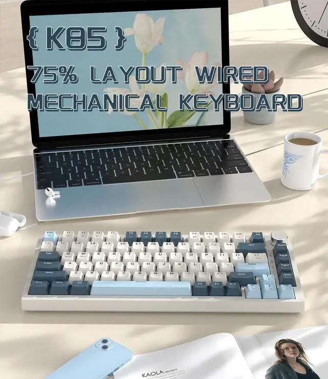 MAMBASNAKE × ATTACK SHARK 82 Keys ANSI Layout & Double-shot PBT KeycapsLike G915, this compact tkl mechanical keyboard features the popular 75% percent layout, strikes the perfect balance between functionality and compactness. Unlike 60 percent gaming keyboard or full-sized ones like the K70 MAX, it preserves essential keys, while optimizing desk space. In addition, made with high-quality PBT material, the keycaps promise durability, resisting the oily shine that can develop over time.