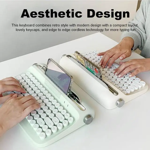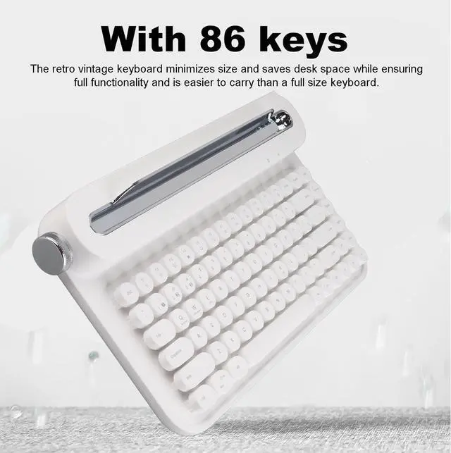 [Aesthetic Design] This keyboard combines retro style with modern design with a compact layout, lovely keycaps, and edge to edge cordless technology for more typing fun. Adopt the classic input method, reproduce the old typewriter knocking feeling.