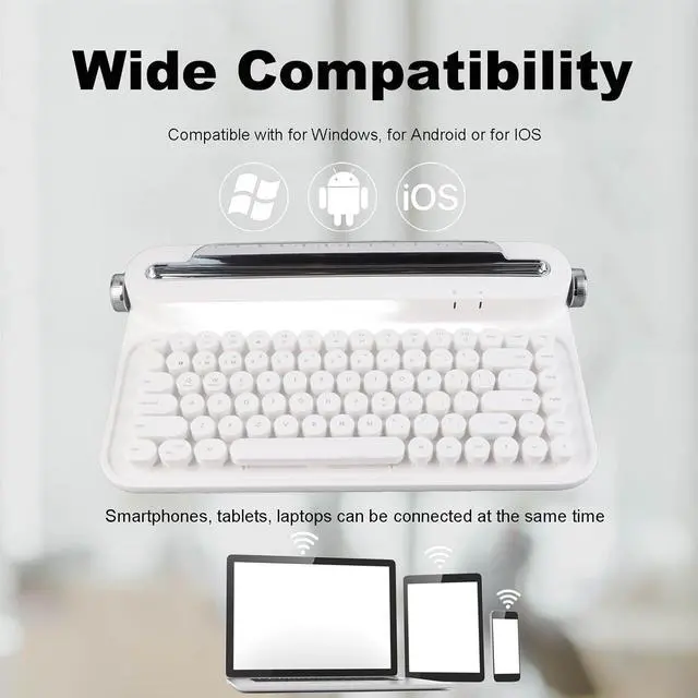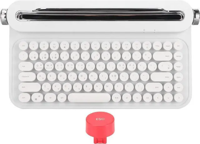 [Wide Compatibility] The cordless typewriter keyboard is compatible with multiple systems and devices, smartphones, tablets, laptops can be connected at the same time, compatible with for Windows, for Android or for iOS. Comes with a red Esc replacement keycap.