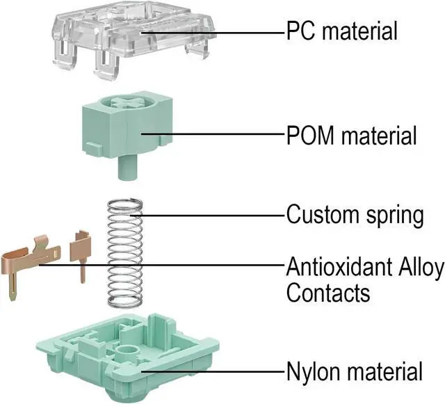 [Product parameters] Operating Force: 65±15gfPre Travel: 1.7mmTotal Travel: 3.0±0.2mm MaxStem: POM Top Housing: PCBottom Housing: Nylon LED Support: SMDPins: 3-PinPre-lubed: Yes