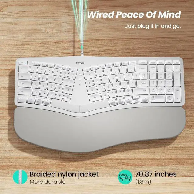 Ergonomic Split DesignEmbrace a more natural typing posture with Nulea ergonomic keyboards unique split design. It adapts to the natural alignment of your hands, ensuring comfort and reducing strain during long typing sessions.