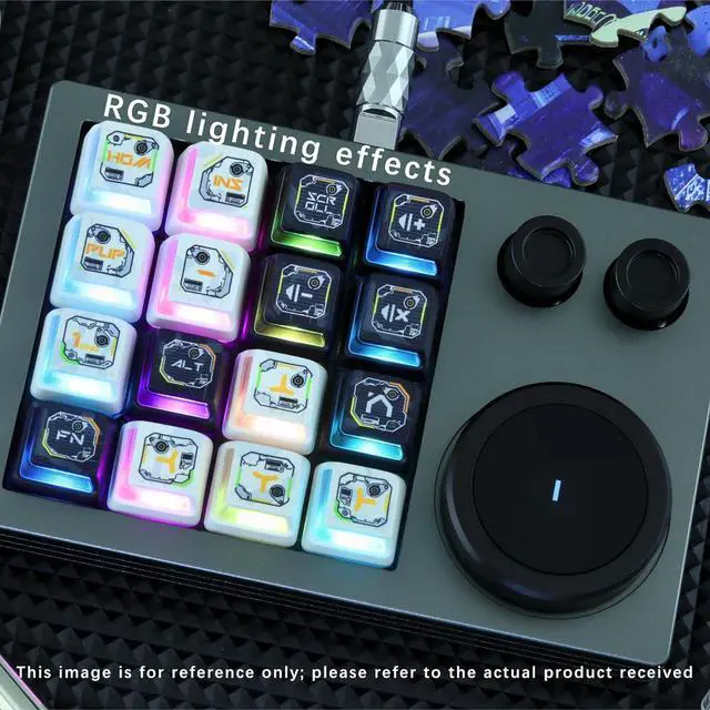 RGB Keyboard with Macro Pad: Features RGB lighting effects with under-lighting design, where the light is evenly diffused through the switches, creating a fuller appearance. Dynamic RGB lighting with adjustable multi-color options.