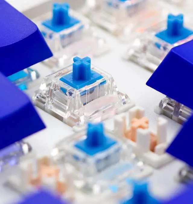 [Pro 3.0 switch] Retains the concentrating structure, Upgrades the texture of the surface of the light guide column, Makes the LED light effect more uniform, And has a smooth tactile structure; The pins were also upgraded to prevent bending during installation.