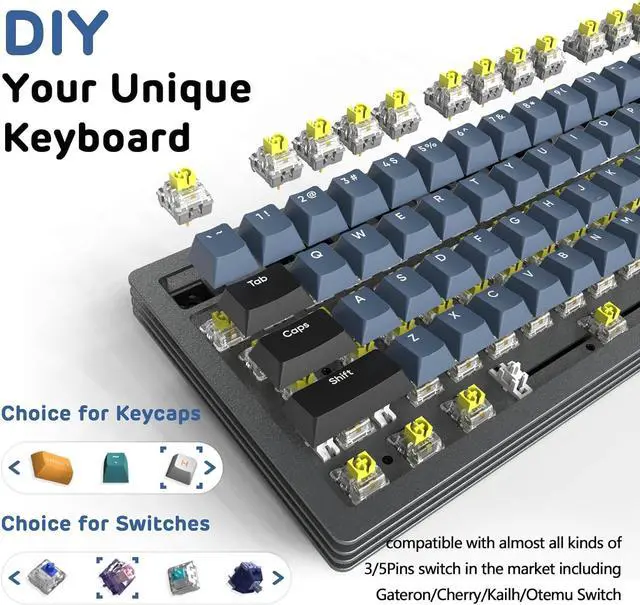 Hot Swappable PCBCompatible with 3Pin/5Pin Switch. AJAZZ AKC087 Kit is equipped with hot swappable PCB to ensure free replacement or change of switches. You dont need to solder it. It is compatible with most 3 pin and 5 pin mechanical switches, such as Cherry, Gateron, Otemu, Kailh and other MX switches and its clones.